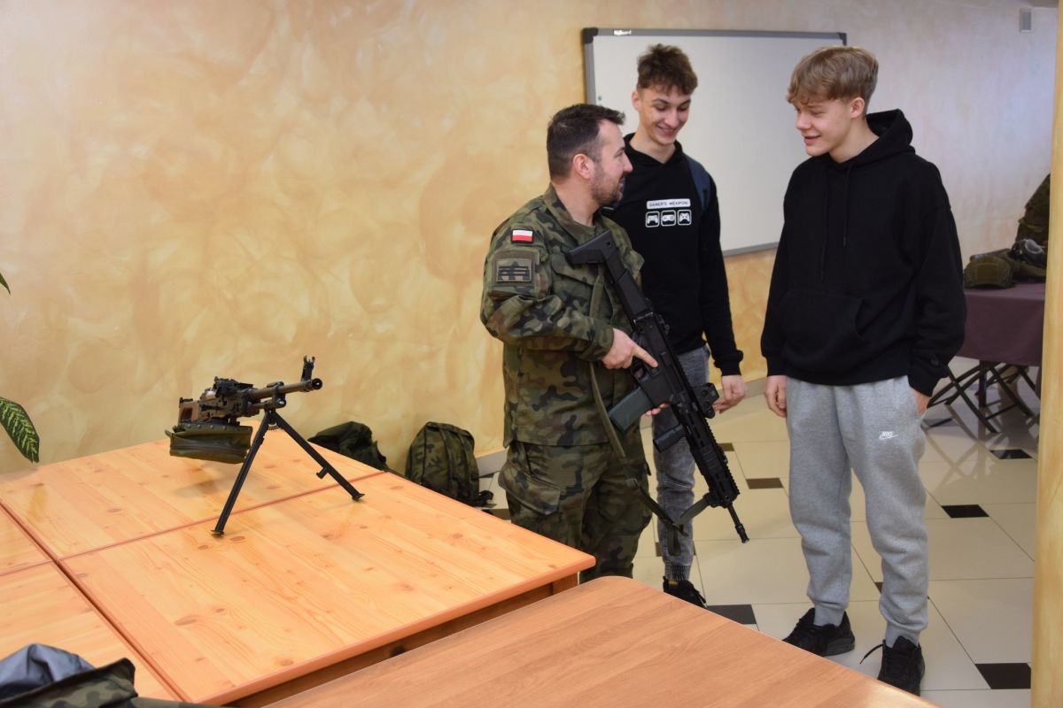 Żołnierze 52 Batalionu Lekkiej Piechoty z Komorowa 5 Mazowieckiej Brygady Obrony Terytorialnej odwiedzili uczniów Zespołu Szkół Centrum Kształcenia Rolniczego w Starym Lubiejewie.