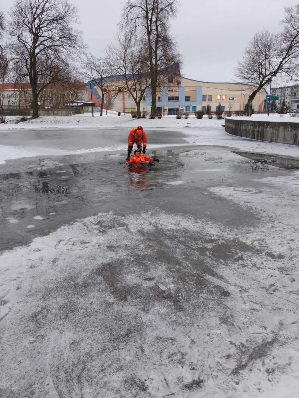 Ćwiczenia strażaków dotyczące działań ratunkowych na lodzie (12.01.2024) - Zdjęcie 6/19