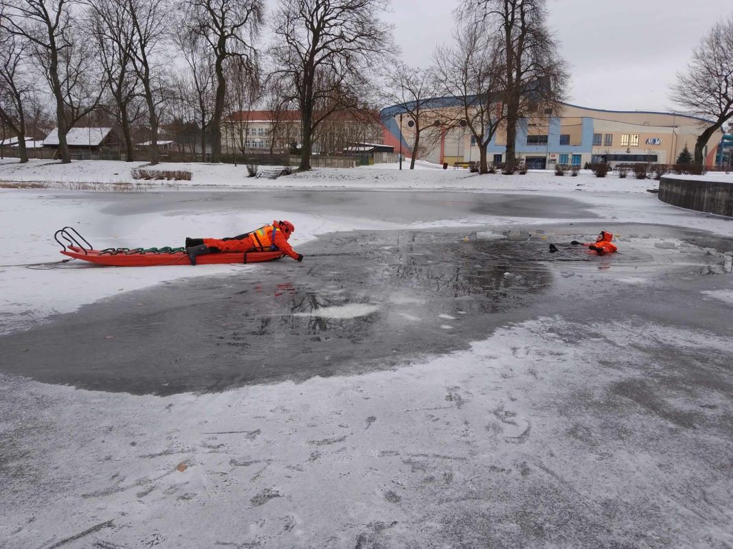 Ćwiczenia strażaków dotyczące działań ratunkowych na lodzie (12.01.2024) - Zdjęcie 14/19