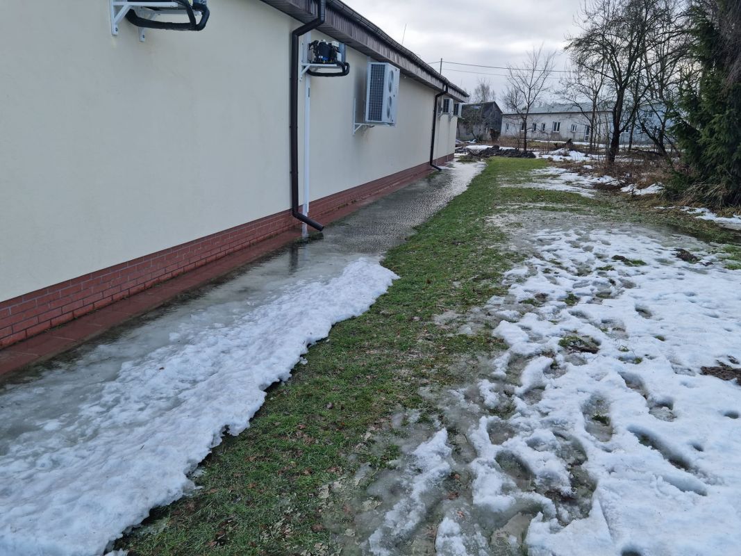 Działania strażaków polegające na odprowadzeniu gromadzącej się wody wokół budynku.