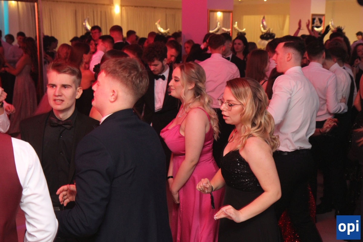 Uczniowie, osoby towarzyszące, grono pedagogiczne i pracownicy szkoły, rodzice i zaproszeni goście - ponad 300 osób bawiło się na balu studniówkowym "Koperniczka".