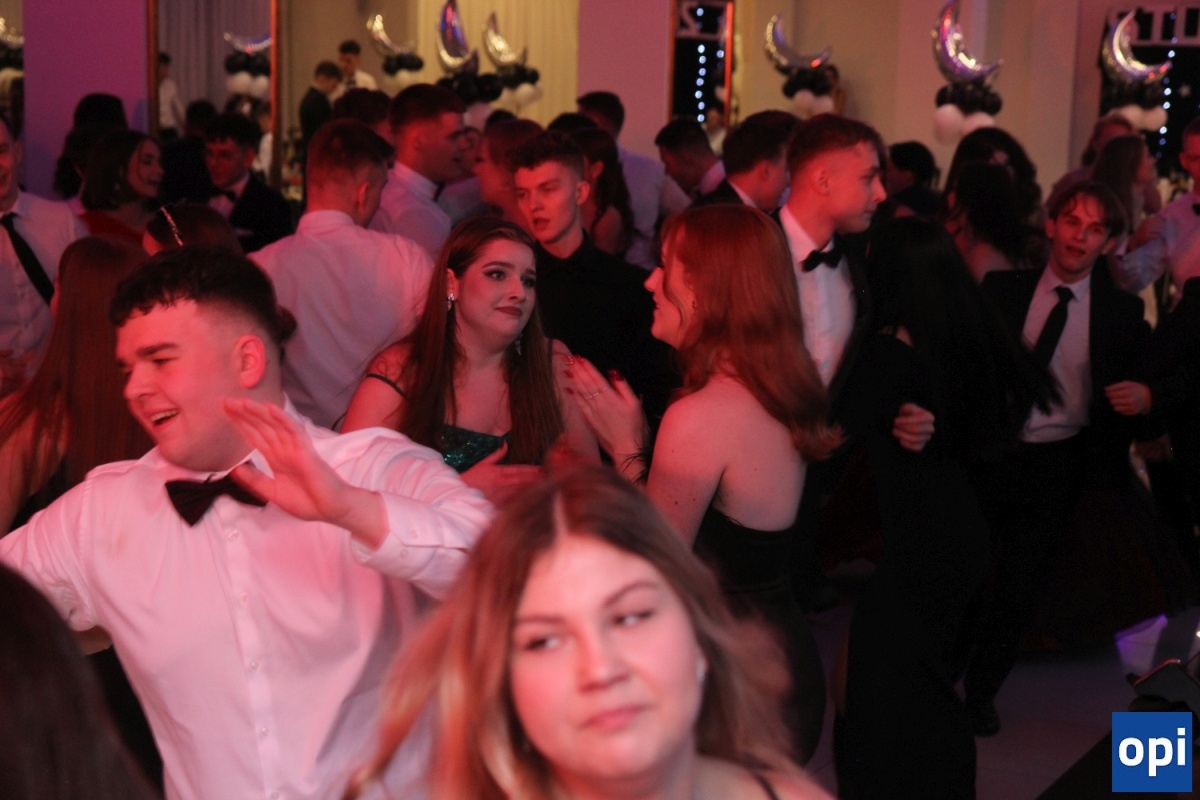 Uczniowie, osoby towarzyszące, grono pedagogiczne i pracownicy szkoły, rodzice i zaproszeni goście - ponad 300 osób bawiło się na balu studniówkowym "Koperniczka".