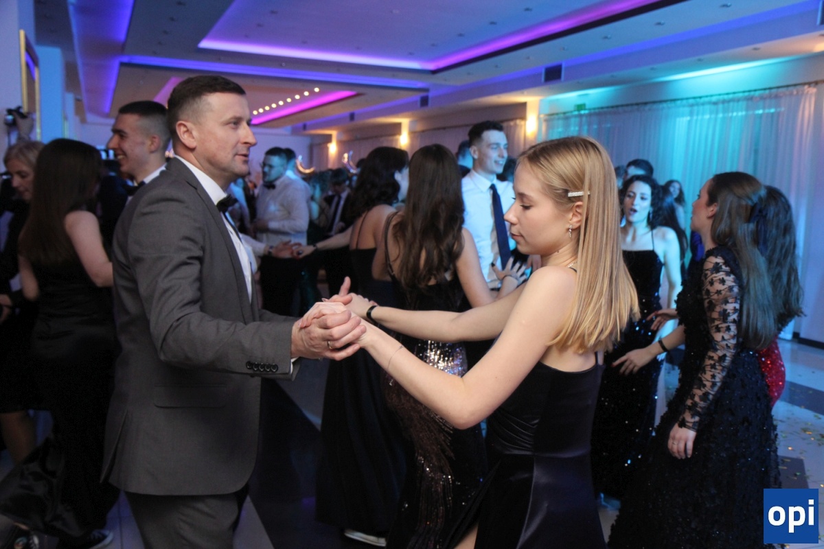 Uczniowie, osoby towarzyszące, grono pedagogiczne i pracownicy szkoły, rodzice i zaproszeni goście - ponad 300 osób bawiło się na balu studniówkowym "Koperniczka".