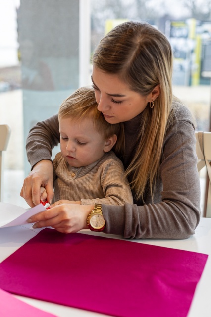 Rodzinne warsztaty z cyklu "Kreatywne historie". Uczestnicy wykonywali walentynkowe ozdoby z filcu.