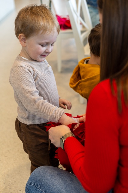 Rodzinne warsztaty z cyklu "Kreatywne historie". Uczestnicy wykonywali walentynkowe ozdoby z filcu.