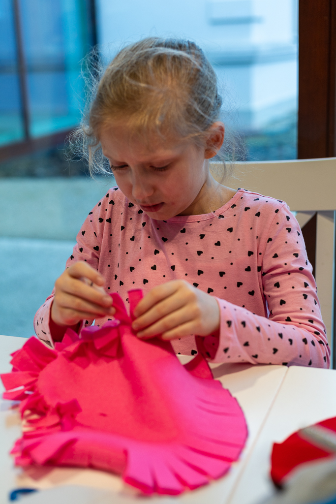 Rodzinne warsztaty z cyklu "Kreatywne historie". Uczestnicy wykonywali walentynkowe ozdoby z filcu.