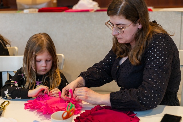 Rodzinne warsztaty z cyklu "Kreatywne historie". Uczestnicy wykonywali walentynkowe ozdoby z filcu.