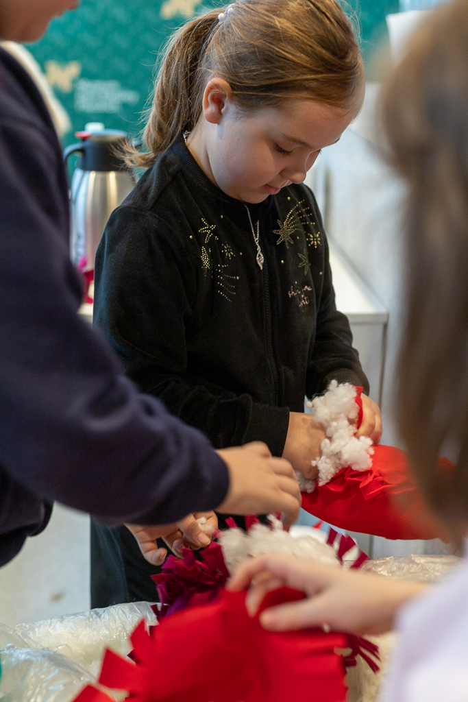 Rodzinne warsztaty z cyklu "Kreatywne historie". Uczestnicy wykonywali walentynkowe ozdoby z filcu.