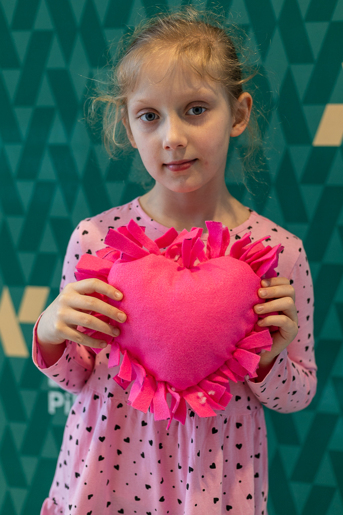 Rodzinne warsztaty z cyklu "Kreatywne historie". Uczestnicy wykonywali walentynkowe ozdoby z filcu.
