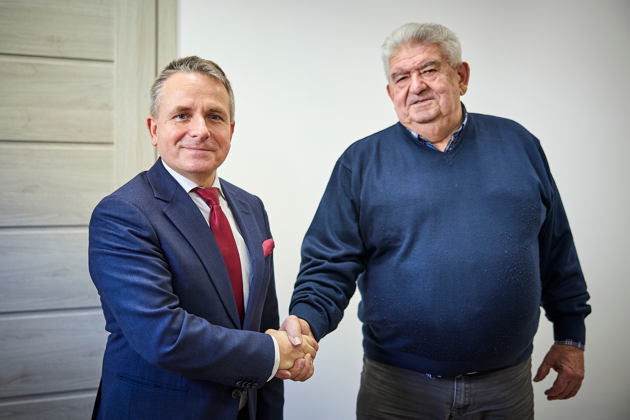 Oficjalne podpisanie umowy, między burmistrzem Jerzym Bauerem, a prezesem PSS "Społem" Adamem Rostkowskim.