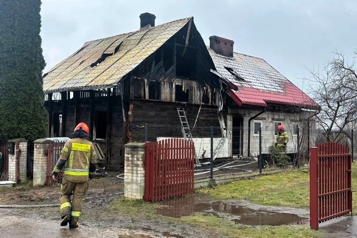 Do gaszenia pożaru drewnianego budynku zadysponowano 7 zastępów strażaków.