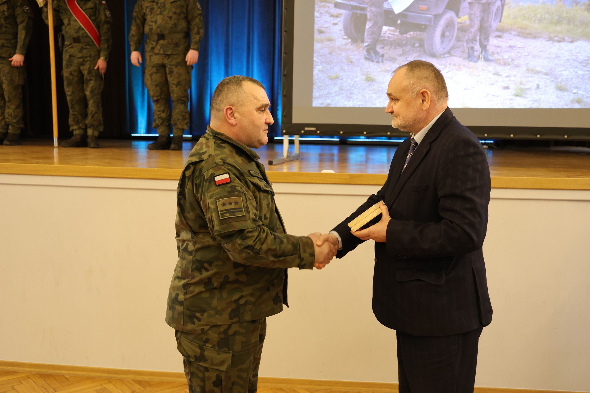 Uczestnicy uroczystości zostali oprowadzeni po wystawie sali tradycji Jednostki Wojskowej w Komorowie.