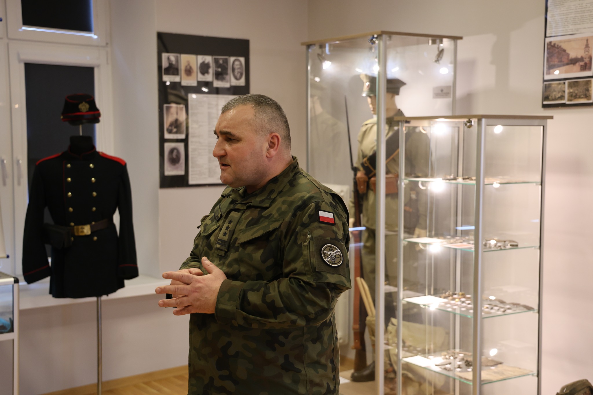 Uczestnicy uroczystości zostali oprowadzeni po wystawie sali tradycji Jednostki Wojskowej w Komorowie.