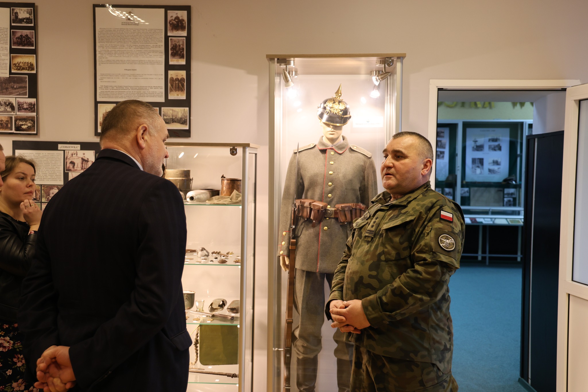 Uczestnicy uroczystości zostali oprowadzeni po wystawie sali tradycji Jednostki Wojskowej w Komorowie.