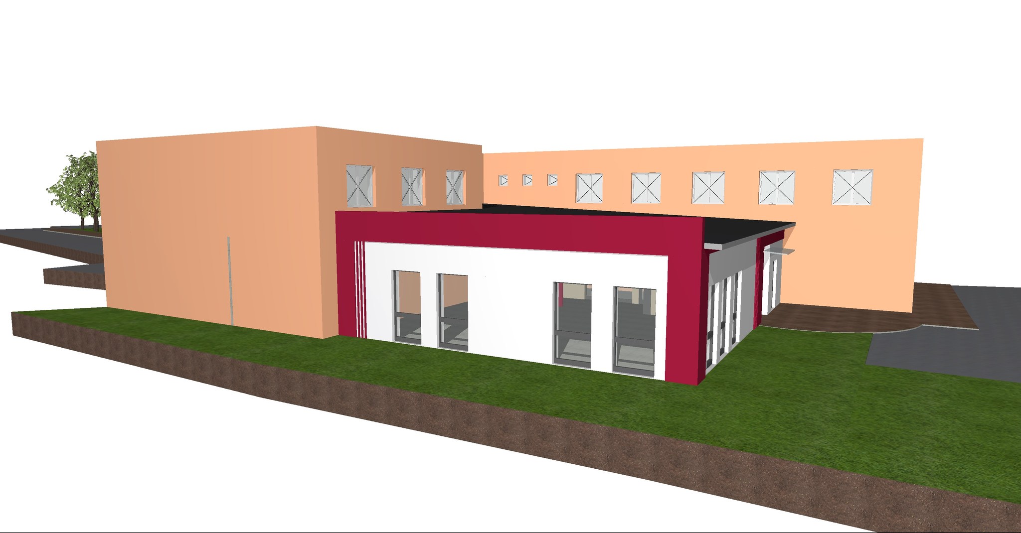 Wizualizacja - sala widowiskowo-konferencyjna, widok od strony od strony elewacji zachodniej.