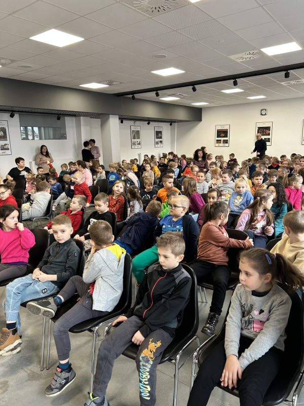 Artyści z Łomżyńskiej Filharmonii Kameralnej im. Witolda Lutosławskiego z Łomży wystąpili przed dziećmi z melodiami wiosennymi.