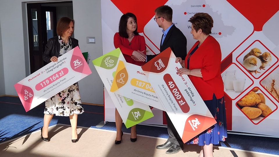 Elżbieta Lanc i Janina Ewa Orzełowska podpisały umowy z beneficjentami z powiatu ostrowskiego, w Szkole Podstawowej im. Papieża Polaka - Jana Pawła II w Starym Lubotyniu.