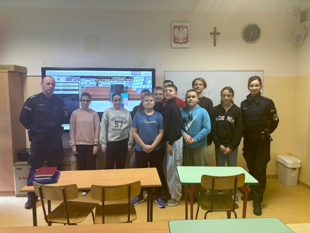 Policjanci ostrowskiej komendy przeprowadzili warsztaty z zakresu cyberbezpieczeństwa z wykorzystaniem aplikacji Minecraft Education Edition.