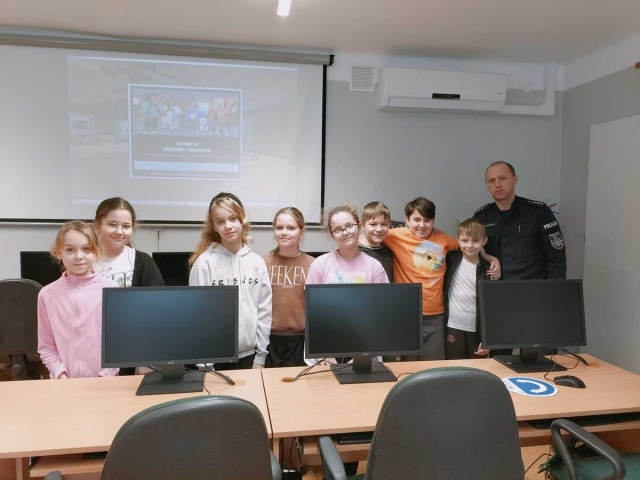 Policjanci ostrowskiej komendy przeprowadzili warsztaty z zakresu cyberbezpieczeństwa z wykorzystaniem aplikacji Minecraft Education Edition.