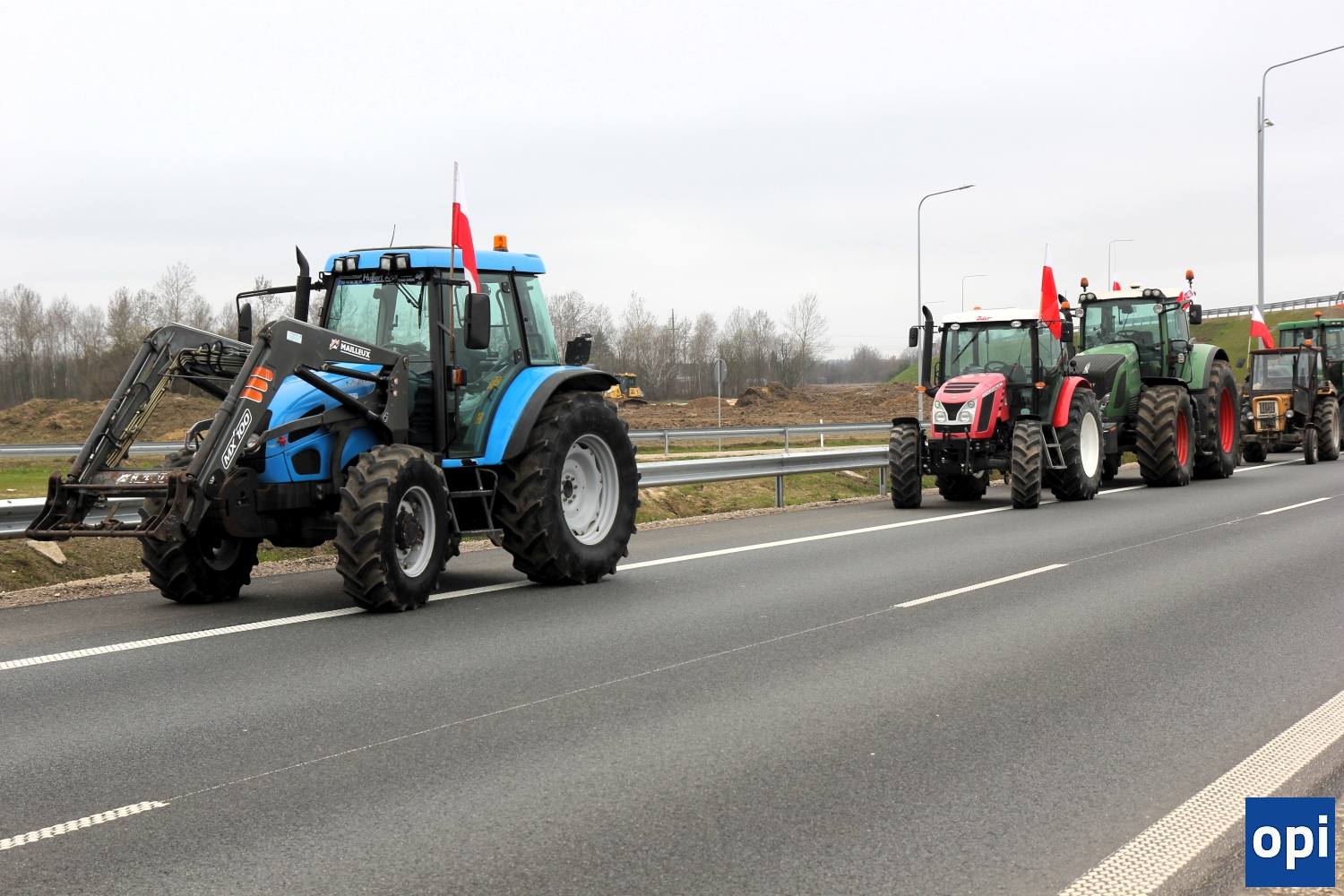 Rolnicy protestowali na węźle Podborze, gdzie zablokowali rondo łączące drogi S8 i S61, węzły ze zjazdami i wyjazdami w obu kierunkach.