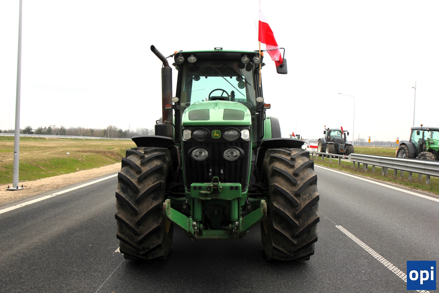 Rolnicy protestowali na węźle Podborze, gdzie zablokowali rondo łączące drogi S8 i S61, węzły ze zjazdami i wyjazdami w obu kierunkach.