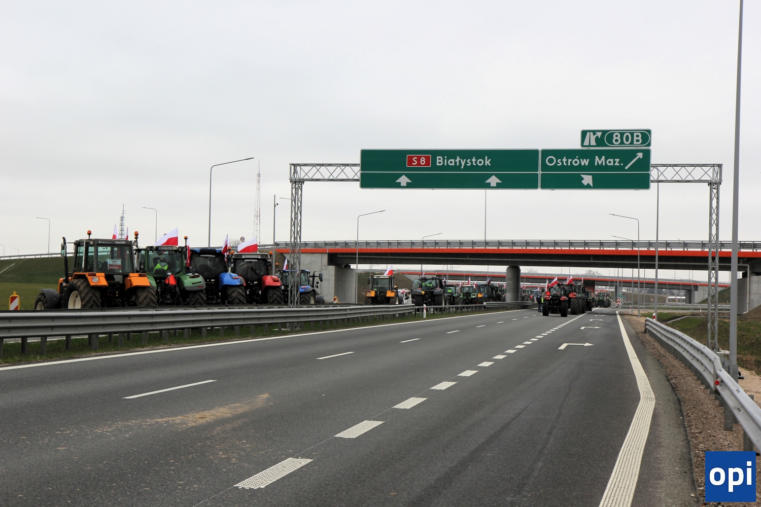 Rolnicy protestowali na węźle Podborze, gdzie zablokowali rondo łączące drogi S8 i S61, węzły ze zjazdami i wyjazdami w obu kierunkach.