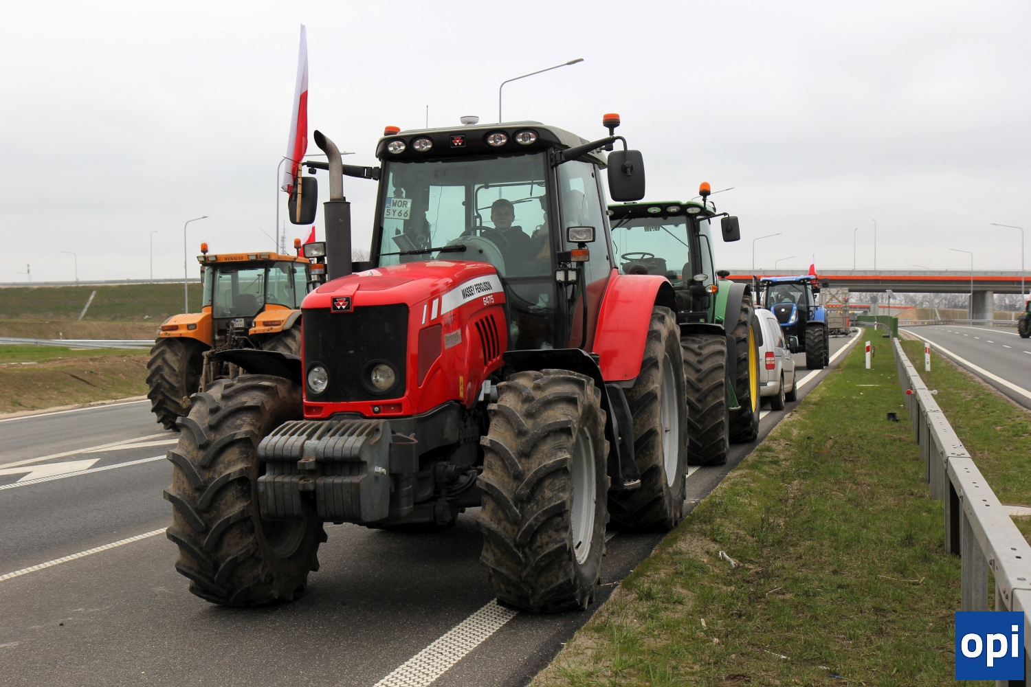 Rolnicy protestowali na węźle Podborze, gdzie zablokowali rondo łączące drogi S8 i S61, węzły ze zjazdami i wyjazdami w obu kierunkach.