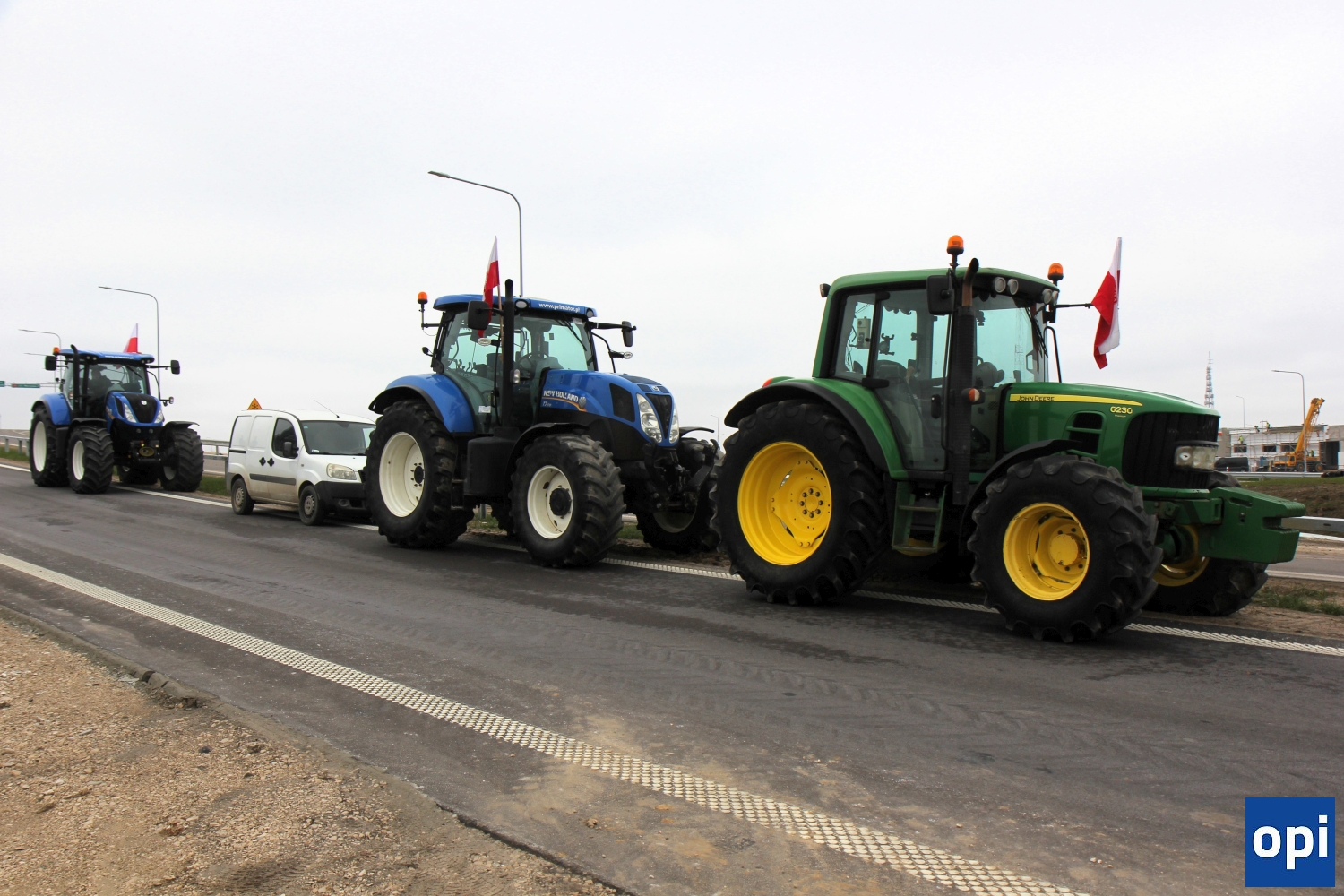 Rolnicy protestowali na węźle Podborze, gdzie zablokowali rondo łączące drogi S8 i S61, węzły ze zjazdami i wyjazdami w obu kierunkach.