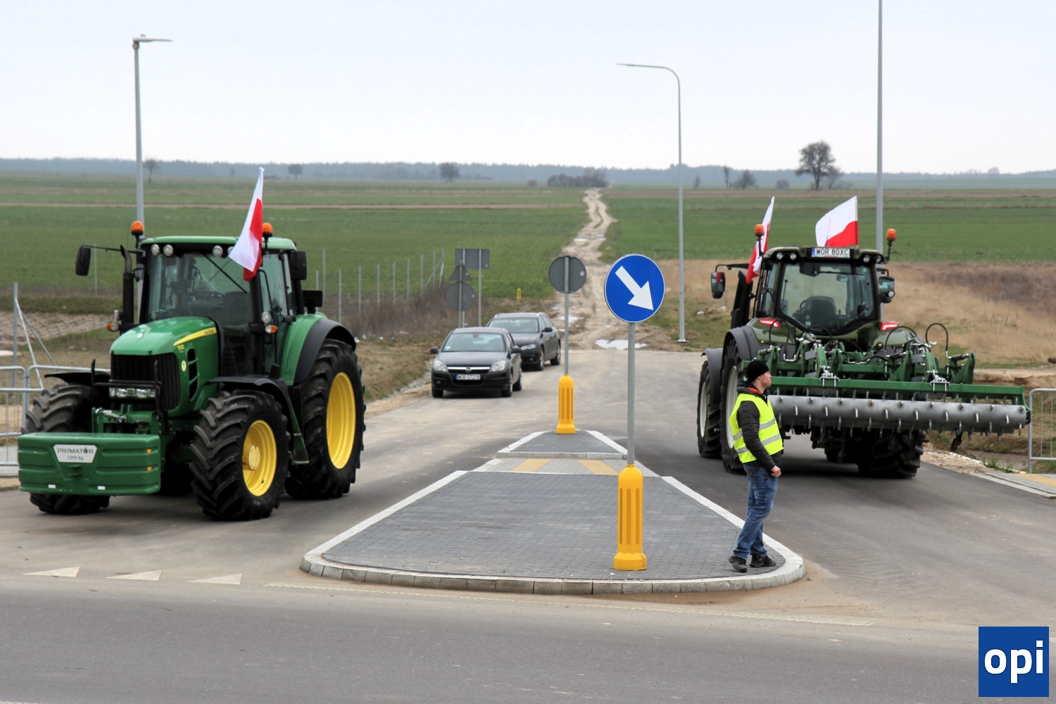 Rolnicy protestowali na węźle Podborze, gdzie zablokowali rondo łączące drogi S8 i S61, węzły ze zjazdami i wyjazdami w obu kierunkach.