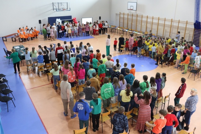 W hali sportowej odbył się "Wesoły apel" i międzyklasowy turniej pt. "Kocham Cię Polsko".