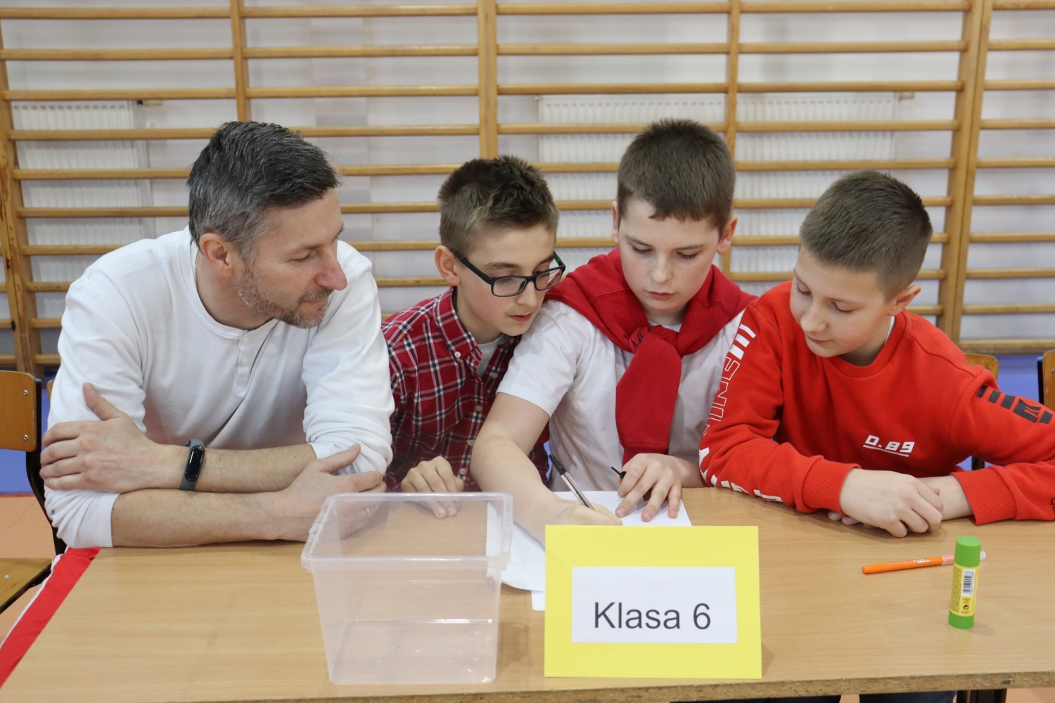 W hali sportowej odbył się "Wesoły apel" i międzyklasowy turniej pt. "Kocham Cię Polsko".
