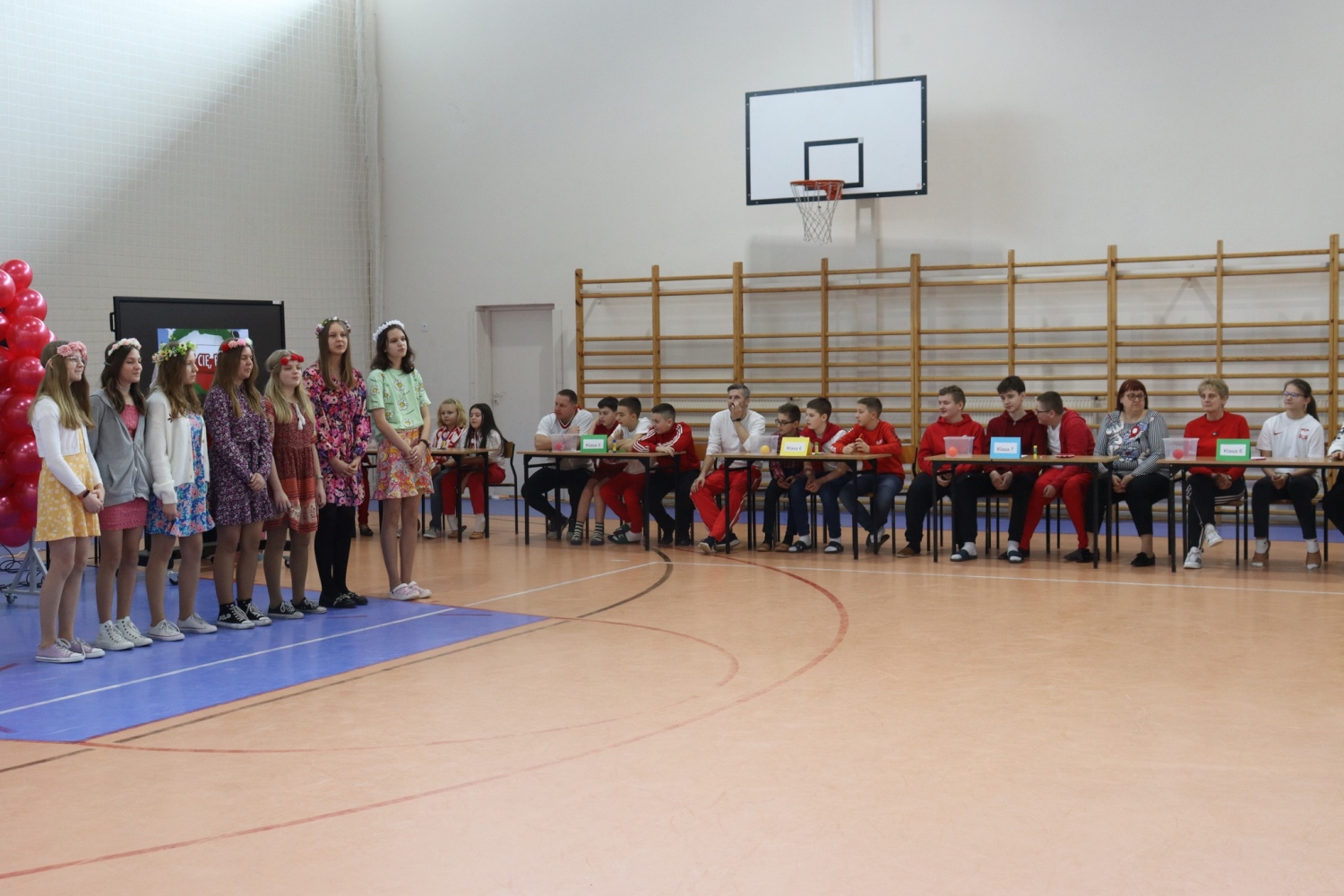 W hali sportowej odbył się "Wesoły apel" i międzyklasowy turniej pt. "Kocham Cię Polsko".