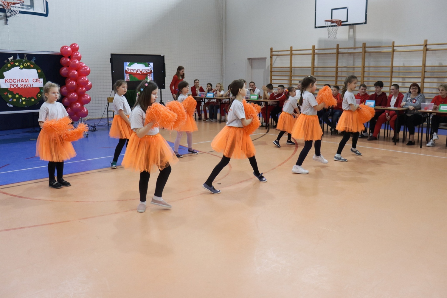 W hali sportowej odbył się "Wesoły apel" i międzyklasowy turniej pt. "Kocham Cię Polsko".