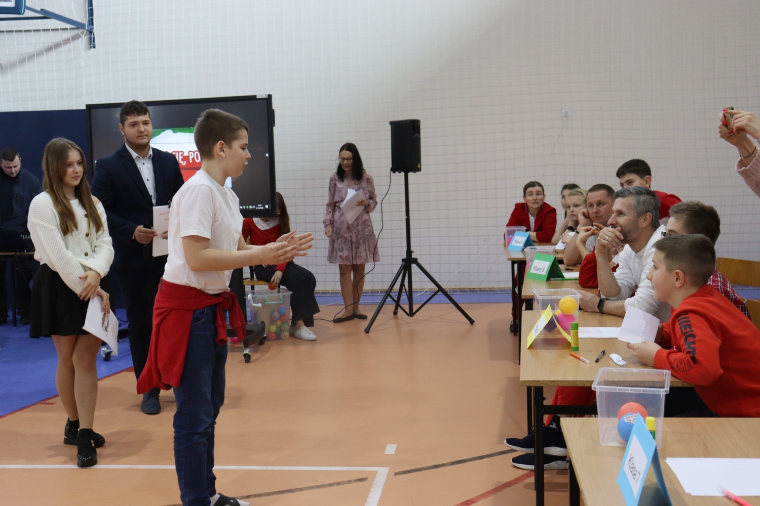 W hali sportowej odbył się "Wesoły apel" i międzyklasowy turniej pt. "Kocham Cię Polsko".