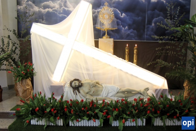 Grób Pański w parafii pw. Chrystusa Dobrego Pasterza w Ostrowi Mazowieckiej (30.03.2024) - Zdjęcie 1/7