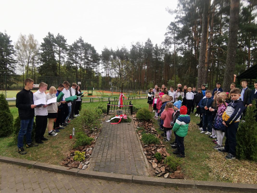 Uczniowie przygotowali montaż słowno - muzyczny, złożyli hołd i zapali znicze pod Dębem Katyńskim.