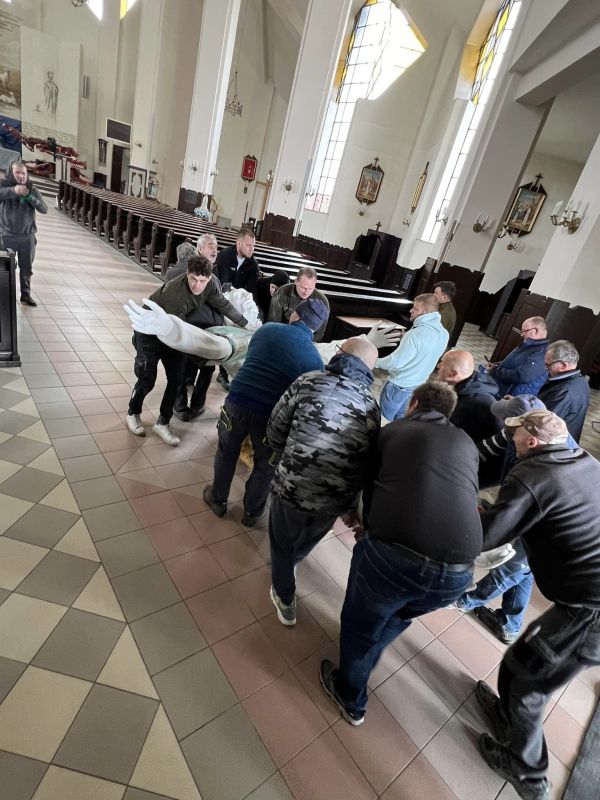 Figura Chrystusa Dobrego Pasterza została zamontowana jako zwieńczenie nastawy ołtarzowej w kościele w Ostrowi Mazowieckiej