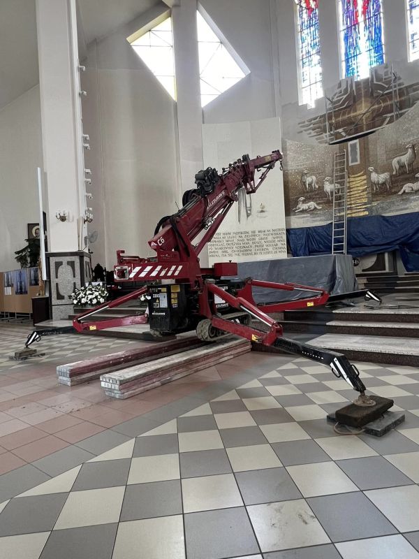 Figura Chrystusa Dobrego Pasterza została zamontowana jako zwieńczenie nastawy ołtarzowej w kościele w Ostrowi Mazowieckiej
