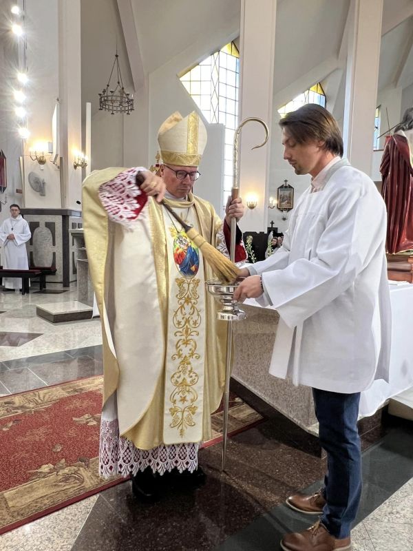 W ostatnią niedzielę podczas Mszy świętej Bp Ordynariusz poświęcił nowy element ołtarza w Kościele pw. Chrystusa Dobrego Pasterza.