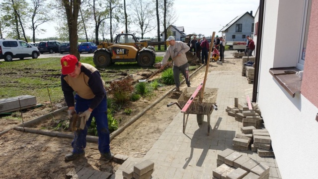 Prace remontowo-budowlane wokół szkoły: został ułożony nowy chodnik i powstał ogródek.