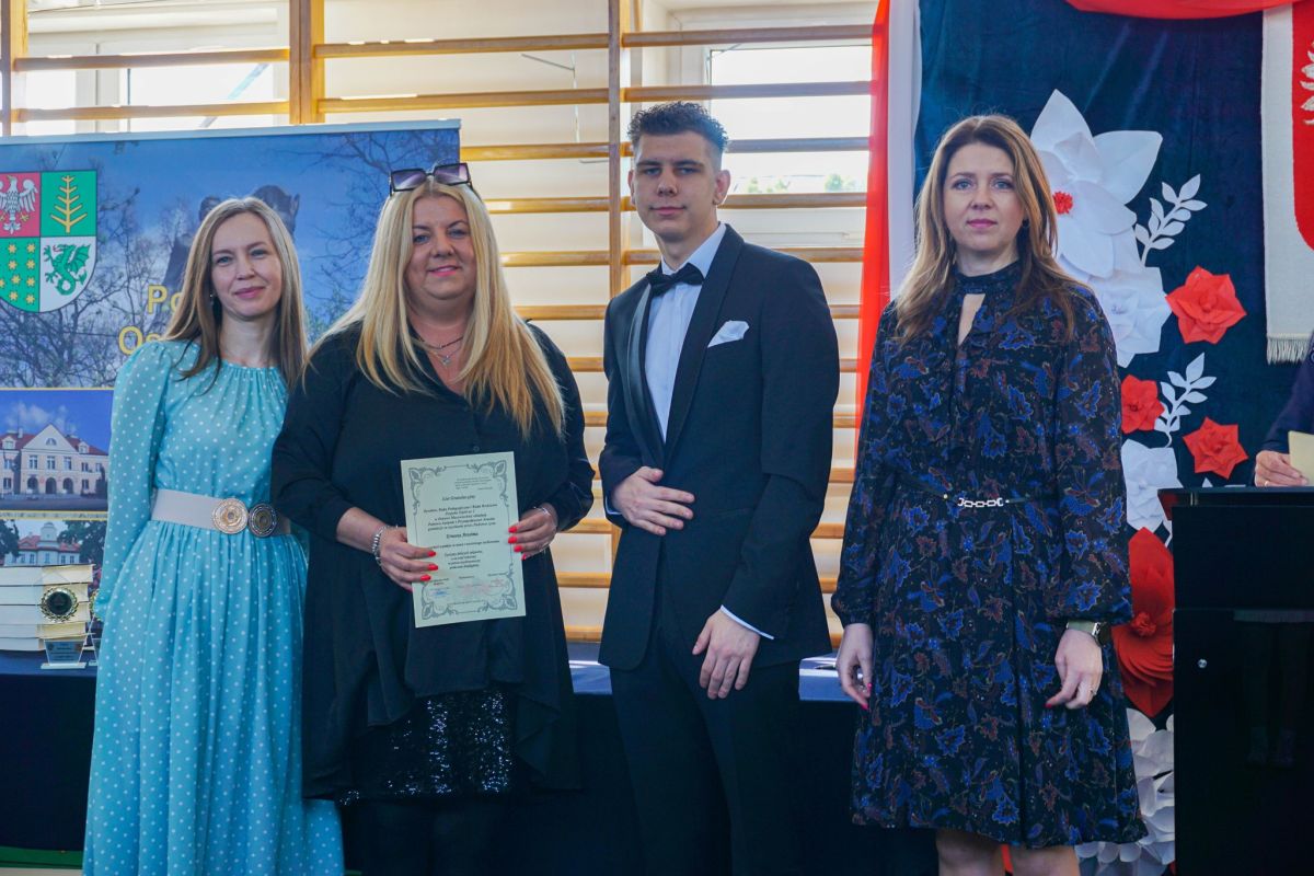 Uroczystość pożegnania maturzystów. Wręczanie młodzieży dyplomów i nagród za osiągnięcia w nauce i za zaangażowanie w życie szkoły.