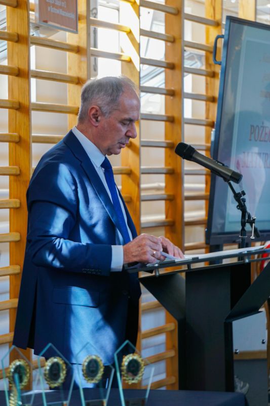 Uroczystość pożegnania maturzystów. Wręczanie młodzieży dyplomów i nagród za osiągnięcia w nauce i za zaangażowanie w życie szkoły.