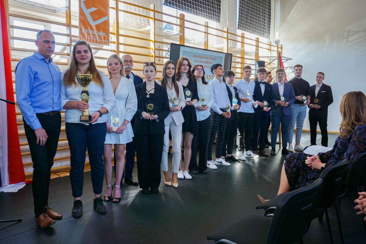 Uroczystość pożegnania maturzystów. Wręczanie młodzieży dyplomów i nagród za osiągnięcia w nauce i za zaangażowanie w życie szkoły.
