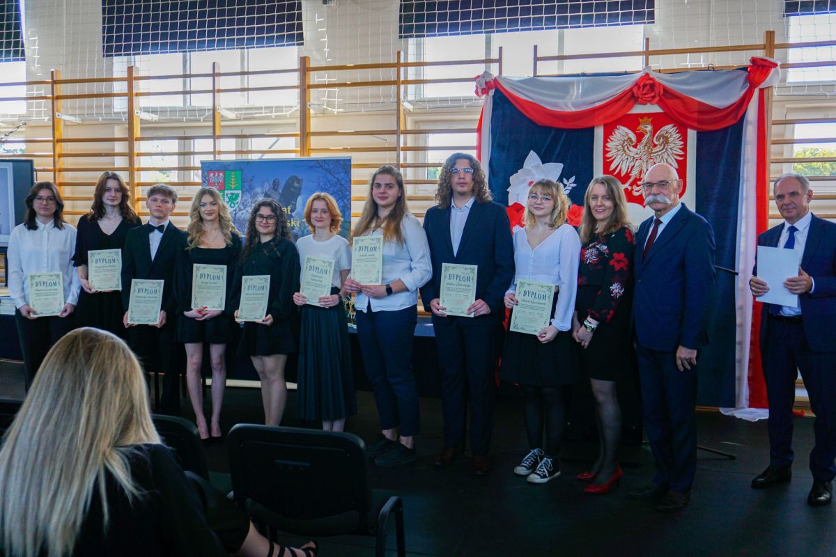 Uroczystość pożegnania maturzystów. Wręczanie młodzieży dyplomów i nagród za osiągnięcia w nauce i za zaangażowanie w życie szkoły.
