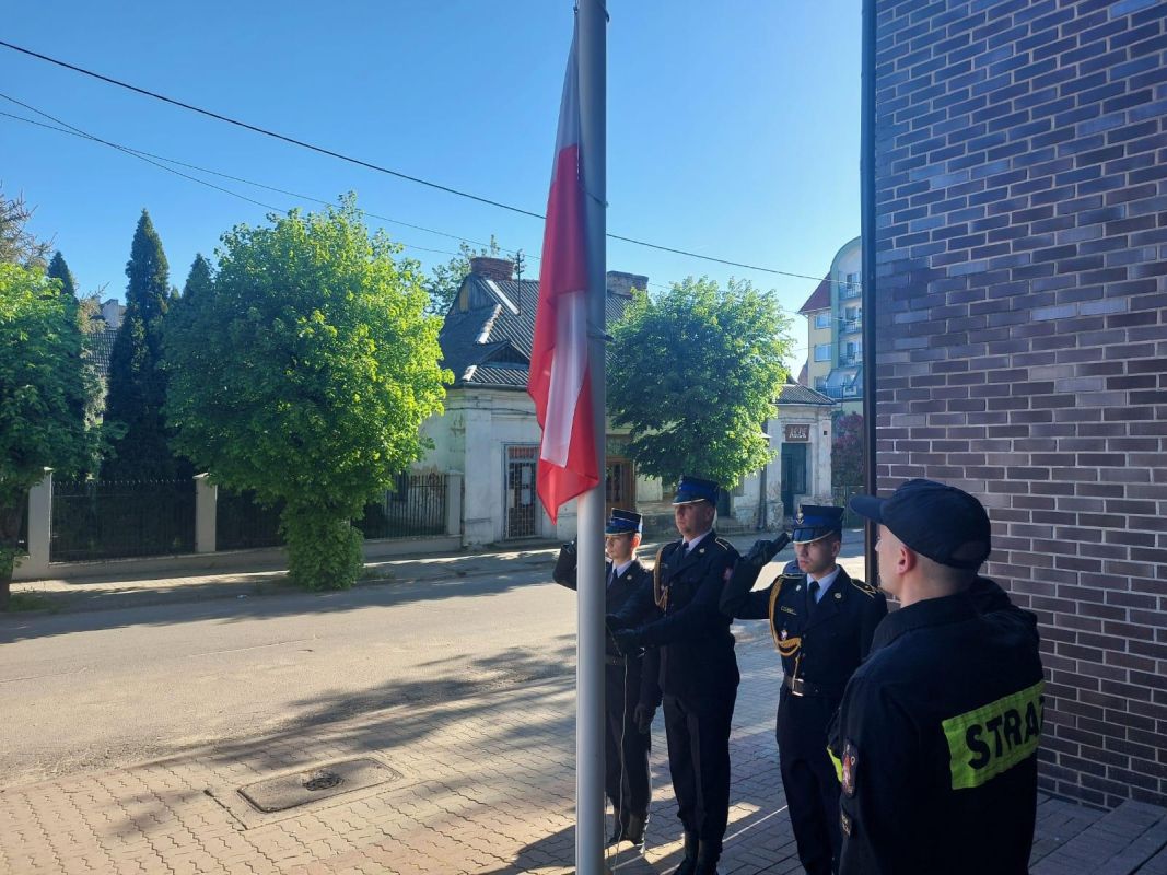 Uroczysty Apel z Okazji Dnia Flagi Rzeczypospolitej Polskiej w Komendzie Powiatowej Państwowej Straży Pożarnej w Ostrowi Mazowieckiej (02.05.2024) - Zdjęcie 4/6