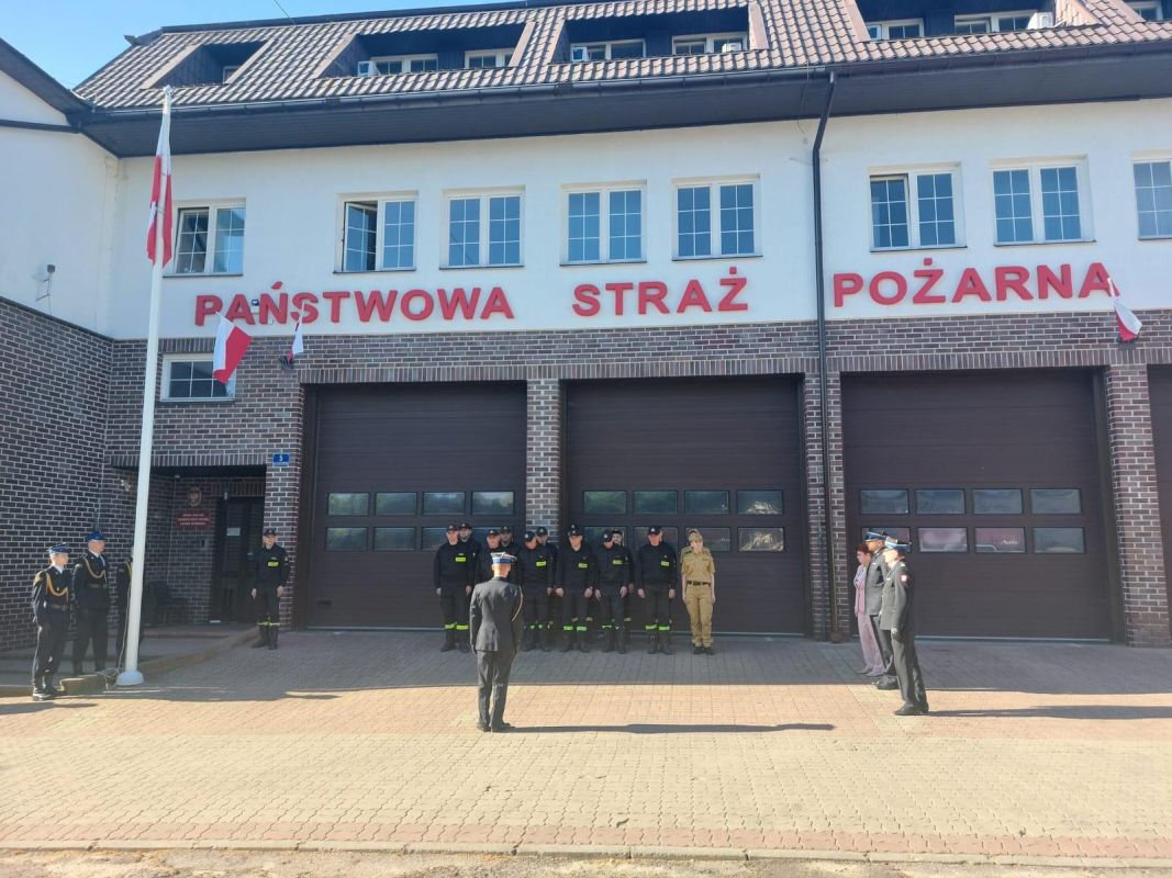 Uroczysty Apel z Okazji Dnia Flagi Rzeczypospolitej Polskiej w Komendzie Powiatowej Państwowej Straży Pożarnej w Ostrowi Mazowieckiej (02.05.2024) - Zdjęcie 5/6