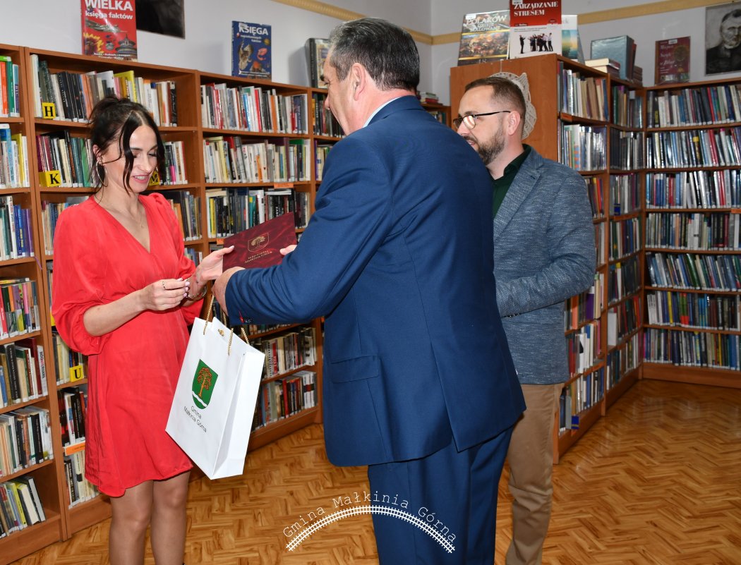 Wójt gminy Dariusz Rafalik oraz sekretarz gminy Cezary Pietrzak z okazji Ogólnopolskiego Dnia Bibliotekarza i Bibliotek odwiedzili pracowników Gminnej Biblioteki Publicznej w Małkini Górnej.