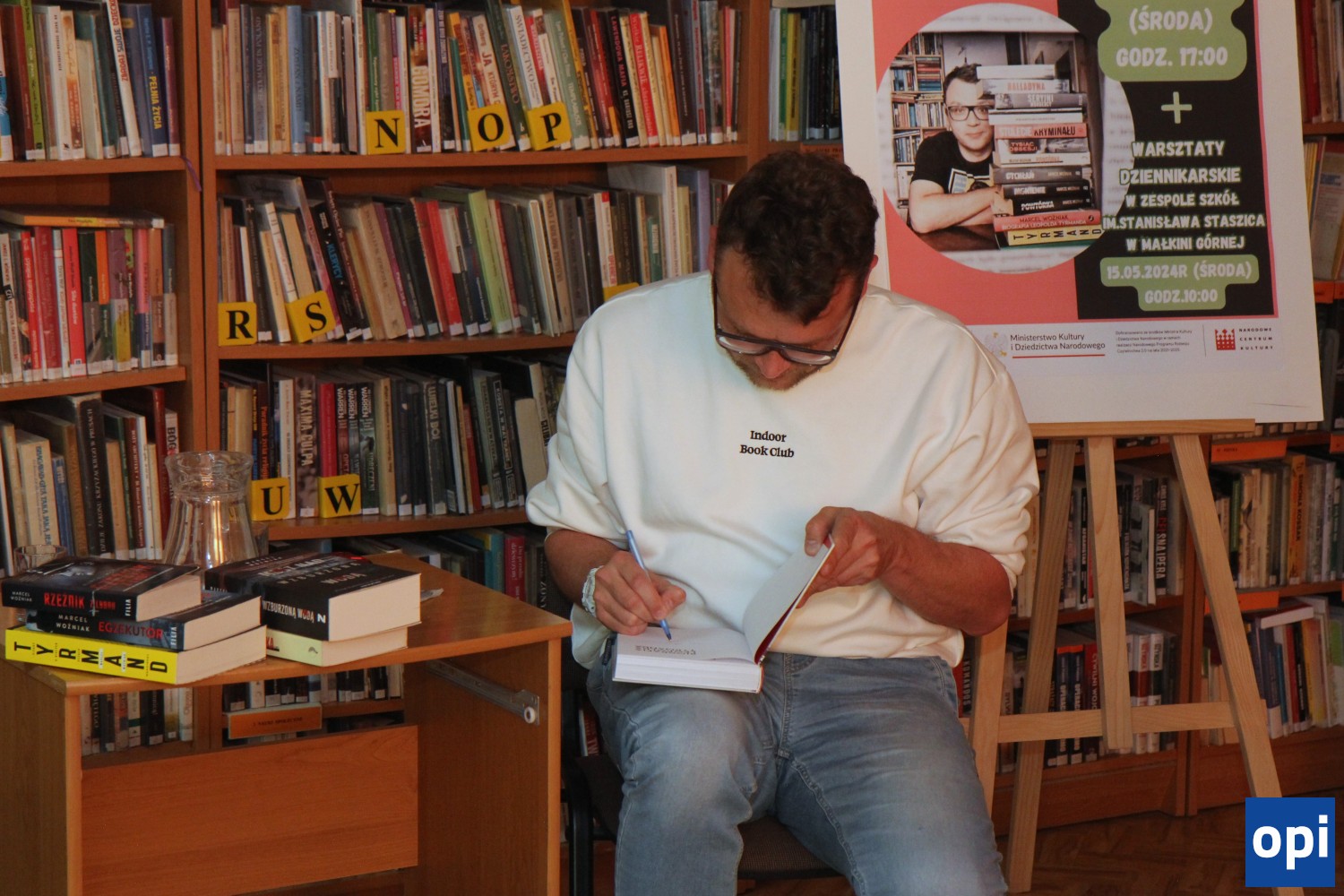 Marcel Woźniak, polski pisarz i scenarzysta, autor powieści kryminalnych i wojennych, oraz biografii Leopolda Tyrmanda odwiedził Małkinię Górną.