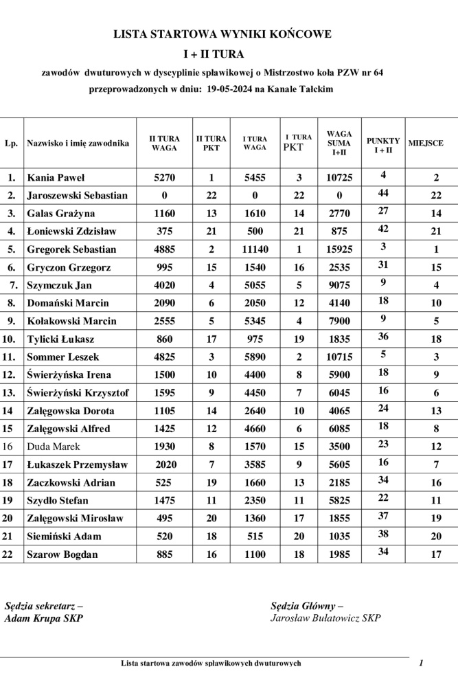 W zawodach wzięło udział 22 zawodników, którzy rywalizowali w dwóch turach, walcząc o miano najlepszego wędkarza w kole.