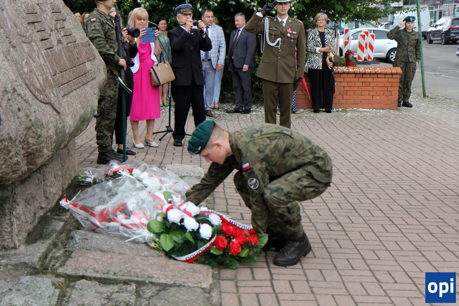 Głaz - pomnik ku pamięci "osiemnastki", przy ratuszu w Ostrowi Mazowieckiej, był miejscem oficjalnych uroczystości.